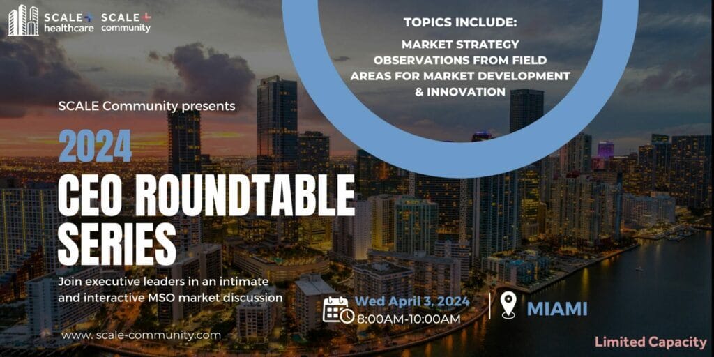 Register Now This event is structured to gather executive leaders in an intimate and interactive MSO market discussion. This CEO Roundtable Series is hosted by SCALE Community, a preeminent MSO […]